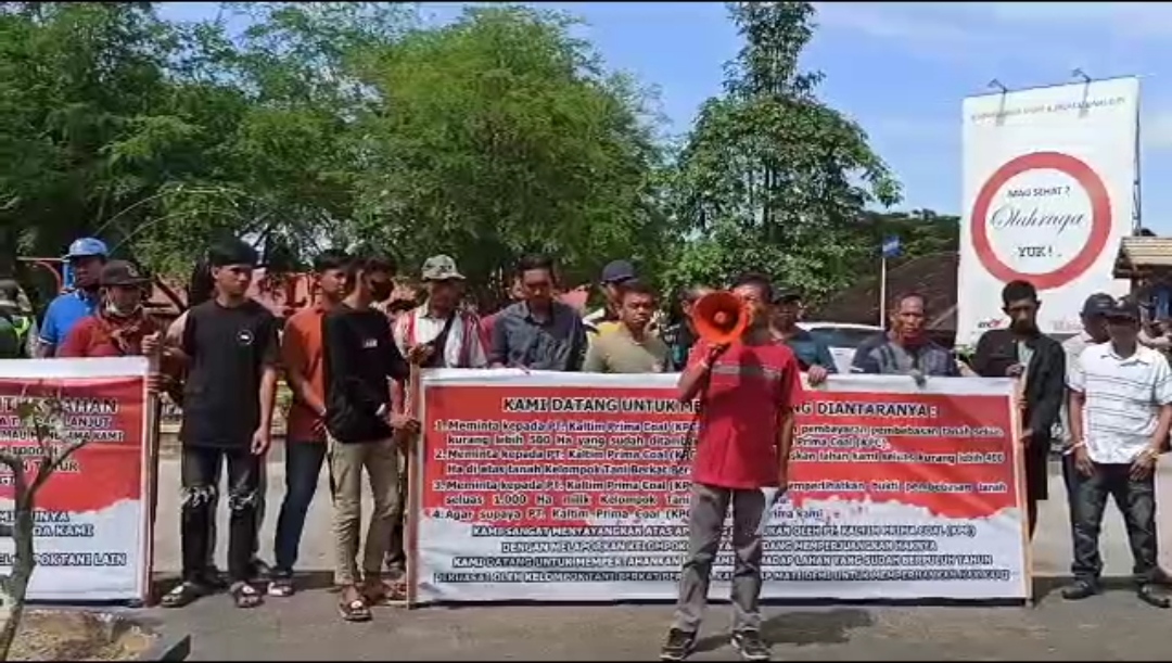 Dalam aksinya pengunjuk rasa datang menuntut pihak KPC dengan membawa  Spanduk bertuliskan ” Lahan kami ditambang oleh Perusahaan besar di Indonesia yang ada di Kalimantan Timur tanpa dibebaskan atau ganti rugi diatas lahan kami ada tumbuhan kelapa sawit, pisang pepaya dll, kami punya surat dokumen terhadap lahan yang kami punya”.