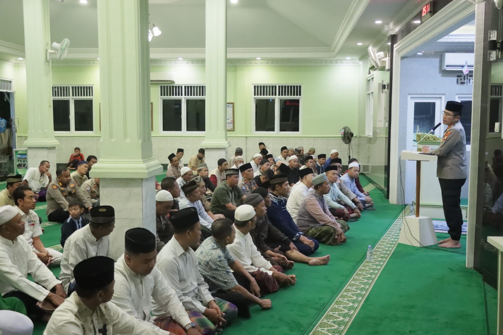 Acara ditutup dengan ramah tamah antara jajaran kepolisian dan pengurus DKM Masjid At-Taubah.