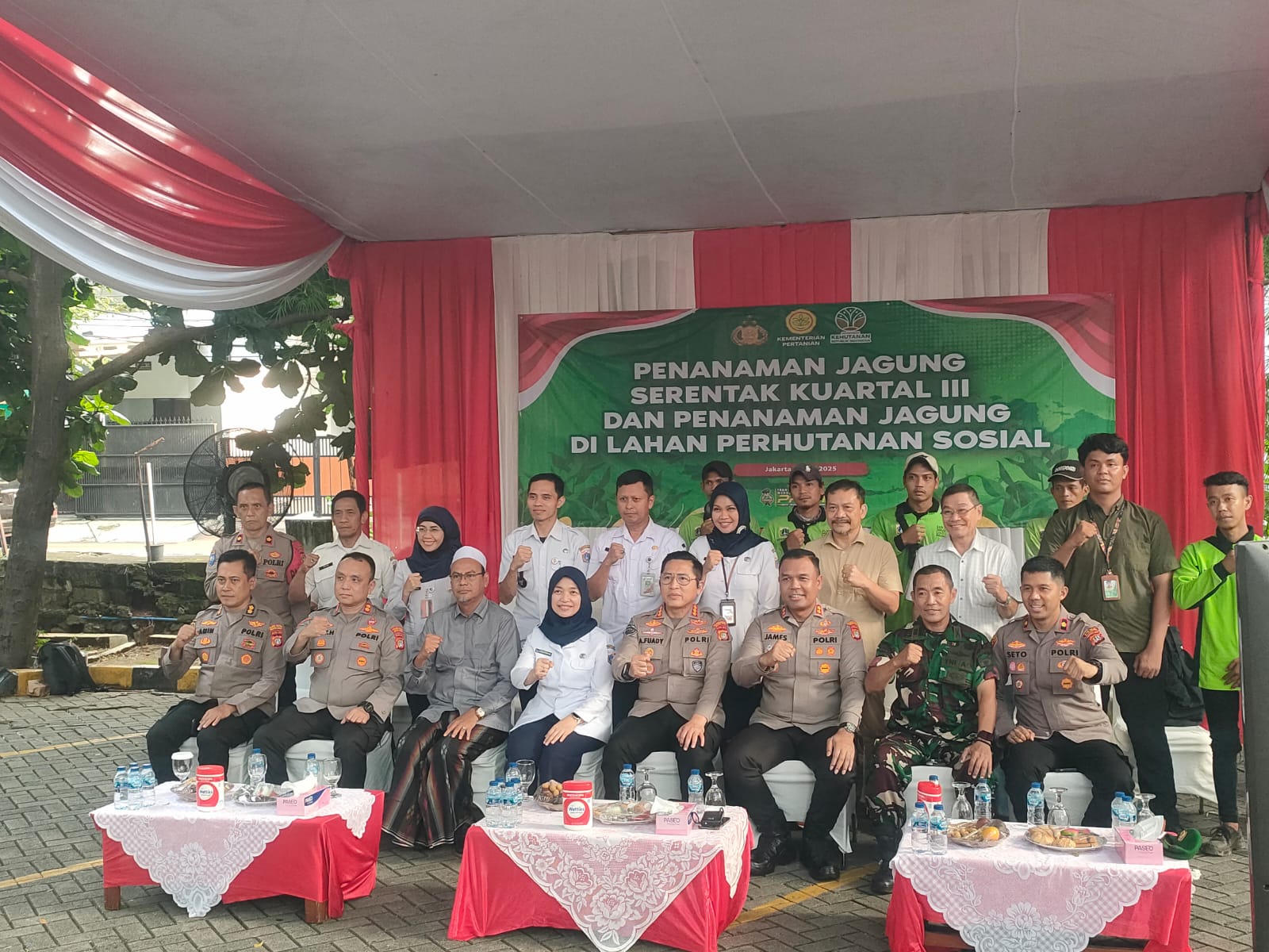 Kapolri Pimpin Penanaman Jagung Serentak Nasional, Polsek Kelapa Gading Tanam Jagung di Lahan Hutan Kota RW 016
