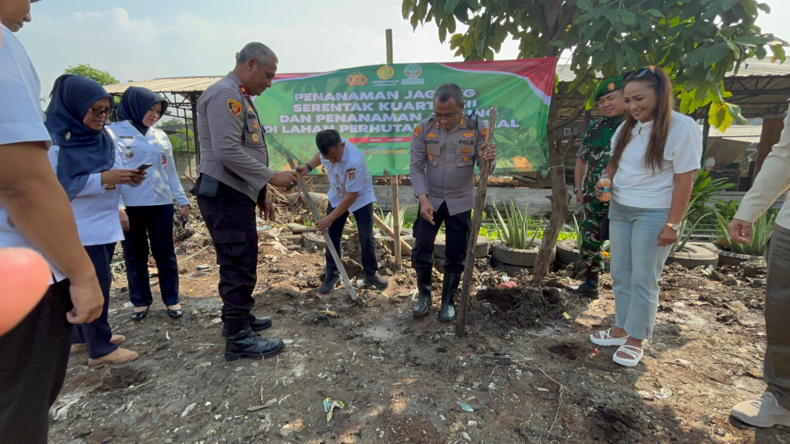 Jakarta Utara – Dalam upaya mendukung program ketahanan pangan nasional, Kepolisian Sektor (Polsek) Koja menggelar kegiatan Penanaman Jagung Serentak Kuartal III di lahan perhutanan sosial milik warga, Rabu (9/7/2025). Kegiatan ini dilakukan secara serentak oleh jajaran Kepolisian di seluruh Indonesia dan terhubung melalui Zoom Meeting yang dipimpin langsung oleh Mabes Polri.