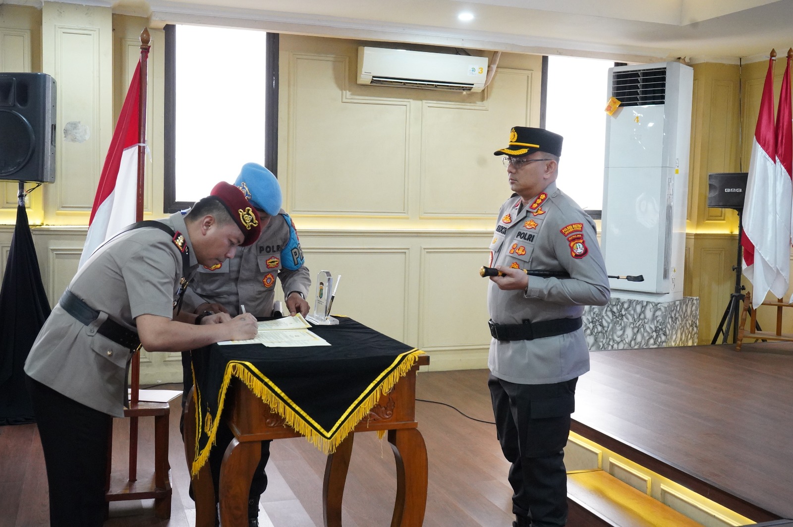 Rangkaian acara berjalan khidmat, mulai dari pembacaan keputusan Kapolda Metro Jaya, penyematan tanda jabatan, pengambilan sumpah, penandatanganan berita acara sertijab hingga fakta integritas.