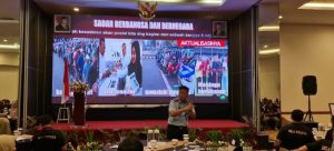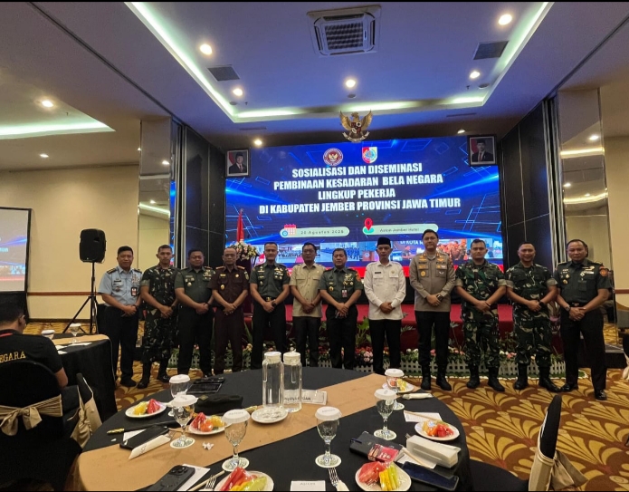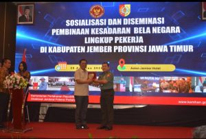 Jember- Kementerian Pertahanan Republik Indonesia menggelar Sosialisasi Pembinaan Kesadaran Bela Negara Lingkup Pekerja di Kabupaten Jember Provinsi Jawa Timur dalam rangka menyebarluaskan Nila Dasar Bela Negara di wilayah Jember, Jawa Timur.