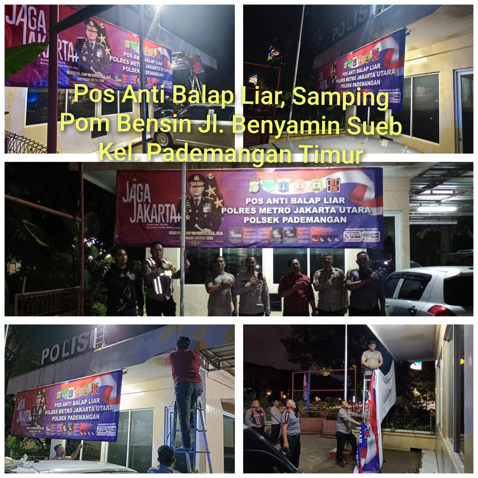 Pemasangan spanduk dilakukan di tiga lokasi strategis, yaitu Pos Anti Tawuran di Jl. Budi Mulia RT 05/13 Kelurahan Pademangan Barat, Pos Anti Balap Liar di samping SPBU Jl. Benyamin Sueb Kelurahan Pademangan Timur, dan Pos Anti Begal di Gerbang Karnaval Ancol, Jl. Ketel, Kelurahan Ancol.