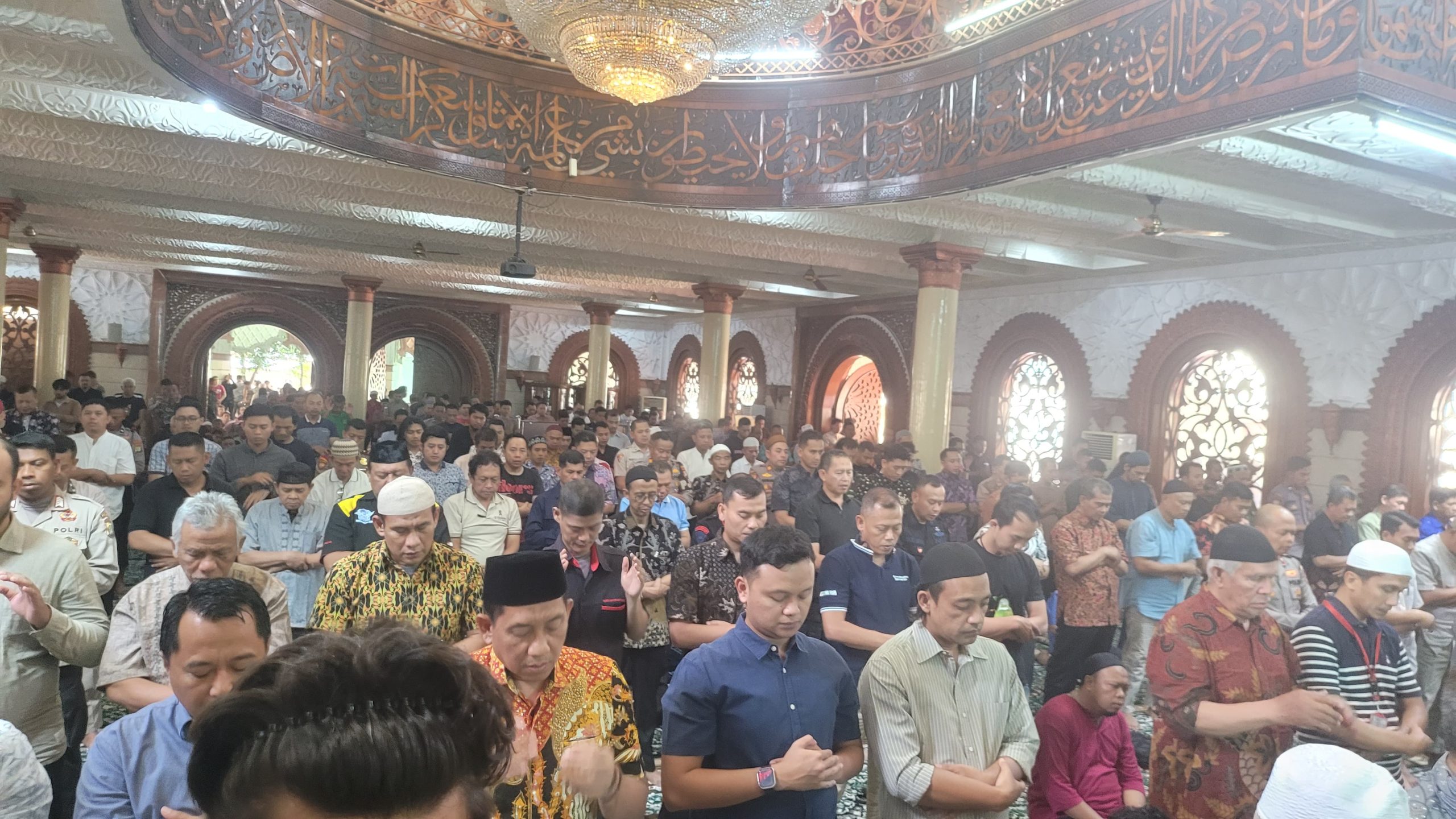 Ibadah dipimpin langsung oleh Ustadz Machmud Al Husyairi dan diikuti oleh jajaran anggota kepolisian serta masyarakat sekitar. Suasana khidmat terasa ketika jamaah memanjatkan doa, tidak hanya untuk mendoakan almarhum agar mendapat tempat terbaik di sisi Allah SWT, tetapi juga untuk mendoakan bangsa Indonesia agar senantiasa dalam keadaan aman dan tenteram.
