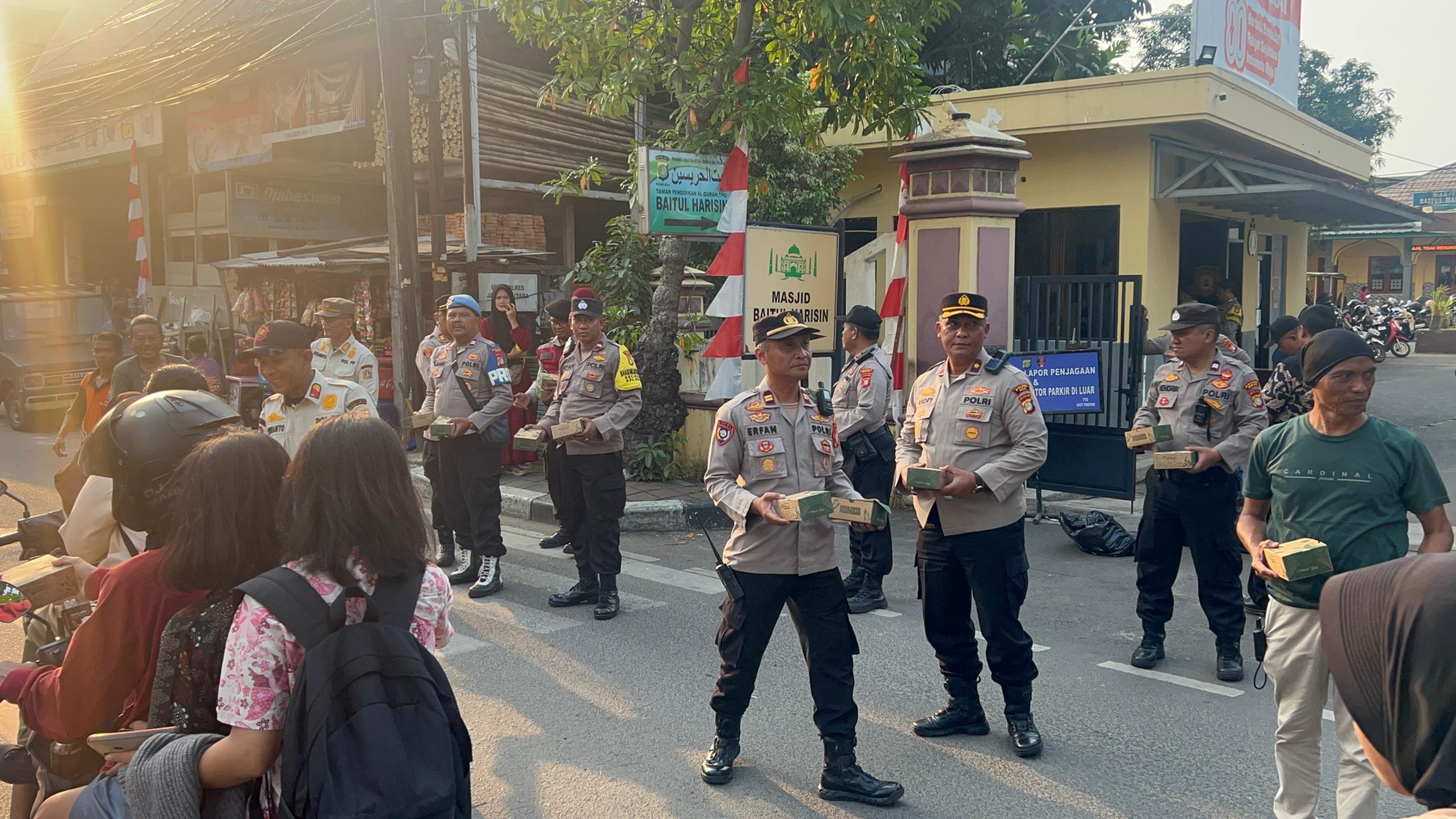 Jakarta Utara – Kepedulian Polri terhadap masyarakat kembali diwujudkan melalui kegiatan Jumat Berkah yang digelar Polsek Koja. Pada Jumat (29/8/2025) sore, jajaran Polsek Koja membagikan 50 nasi kotak kepada warga yang melintas di depan Mako Polsek Koja, Jalan Bhayangkara, Kelurahan Tugu Utara, Kecamatan Koja, Jakarta Utara.
