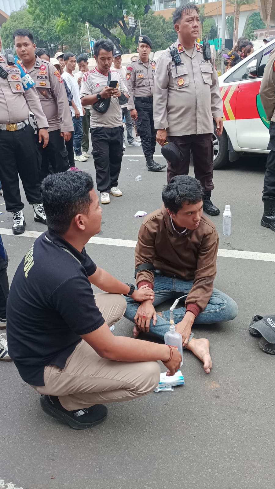 Pihak kepolisian juga dengan sigap mengimbau massa aksi agar tidak mendekat dan memberikan ruang bagi petugas medis untuk bekerja.