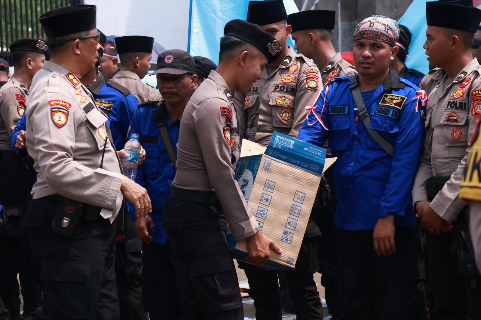 Polisi Bagikan Air Mineral dan Roti di Tengah Aksi Buruh