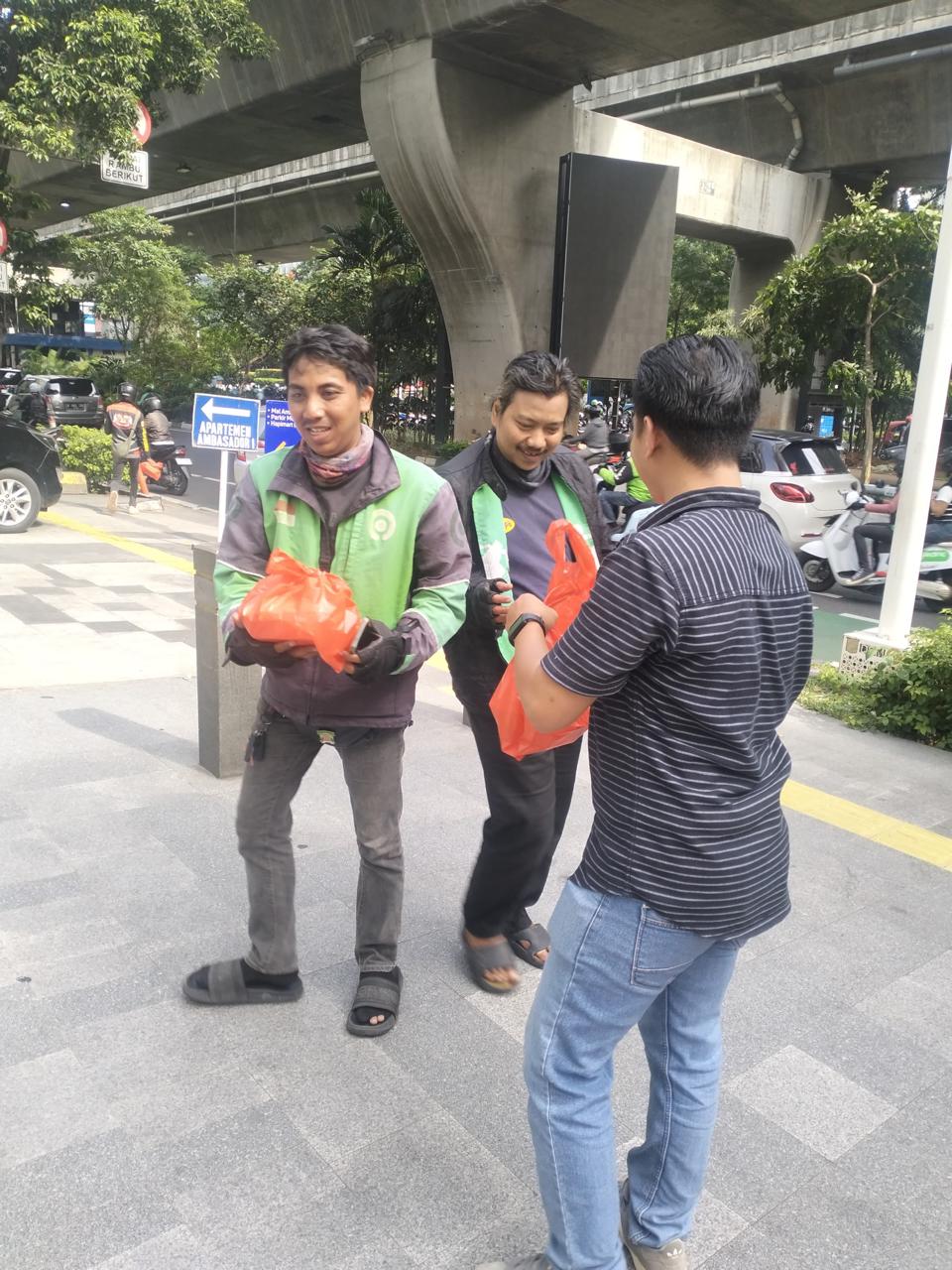 Dalam kegiatan tersebut, pihak BRI membagikan sekitar 100 nasi kotak kepada warga setempat, pengendara motor, ojek online, pengemis, tukang parkir, serta masyarakat yang melintas di kawasan Mall Ambassador.